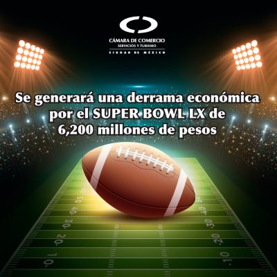 Ciudad de México, 5 de febrero del 2026.- La Cámara Nacional de Comercio, Servicios y Turismo de la Ciudad de México anuncia proyecciones optimistas respecto al impacto económico que generará la celebración del Super Bowl LX. Se estima que el evento deportivo más visto del año dejará una derrama económica superior a los 6,200 millones de pesos en la capital del país, lo que representa un aumento de 3.7%, en comparación con el evento del año anterior. Este 2026, cada miembro de la afición gastará entre 500 y 3,000 pesos en comida, bebidas y productos deportivos alusivos antes y durante el partido entre Seattle Seahawks y New England Patriots.